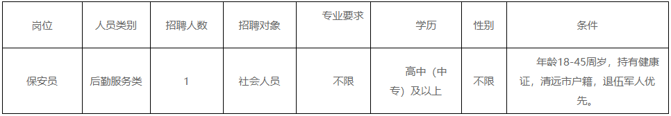 清遠市清城區(qū)機關事務管理局因工作需要,根據《關于印發(fā)<清遠市清城區(qū)機關事業(yè)單位專項工作聘員、合同制聘員以及后勤服務類人員管理辦法>的通知》(城區(qū)人社[2022]20號)文件精神,面向社會公開招聘后勤服務類人員1名,現將有關事宜公告如下: