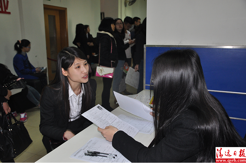 求職人員大多是應(yīng)屆畢業(yè)生以及即將畢業(yè)在讀生,如清遠(yuǎn)職業(yè)技術(shù)學(xué)院等職校則專門組織學(xué)生來求職。在讀大二的清職院學(xué)生小陳希望找到實習(xí)工作,她應(yīng)聘的是某公司董事長助理,經(jīng)過一輪面試后,招聘人員告訴她目前暫不適合溝通傳達(dá)類工作,建議應(yīng)聘行政文員類,最終她聽取了建議。